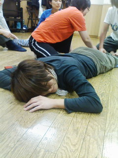 撮影と稽古の合間の休憩時間に、皆で身体のツボ押し三昧が繰り広げられました。